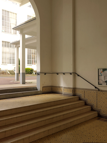 Détail des marches conduisant du hall à la première courImmatriculation