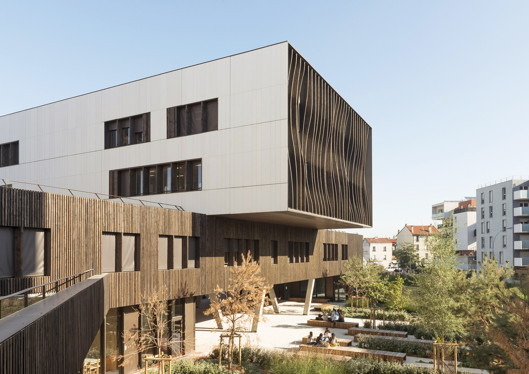 Saint-Denis (Seine-Saint- Denis), lycée La Plaine. Le programme combine des locaux d'enseignement et un internat. Les architectes ont cherché, par le choix de volumes en surplomb, à ménager des vues sur le contexte urbain environnant.Immatriculation