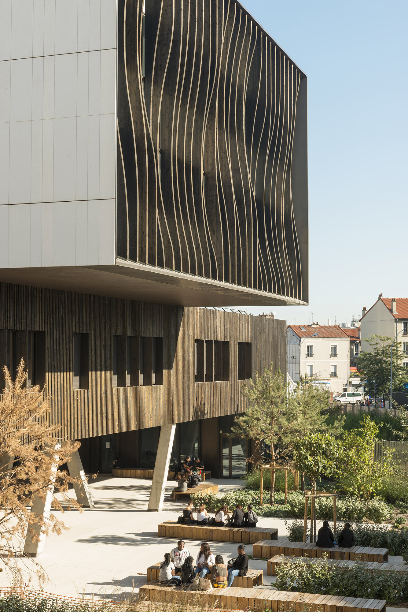 Saint-Denis (Seine-Saint- Denis), lycée La Plaine. Cet établissement se veut aussi à énergie zéro. Les façades sont traitées comme un entrelac de rubans, qui produit un effet ondoyant.Immatriculation